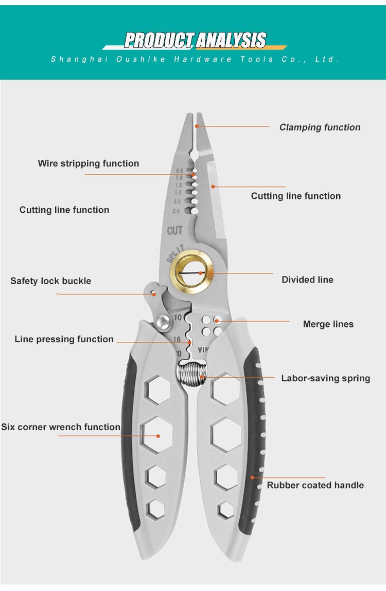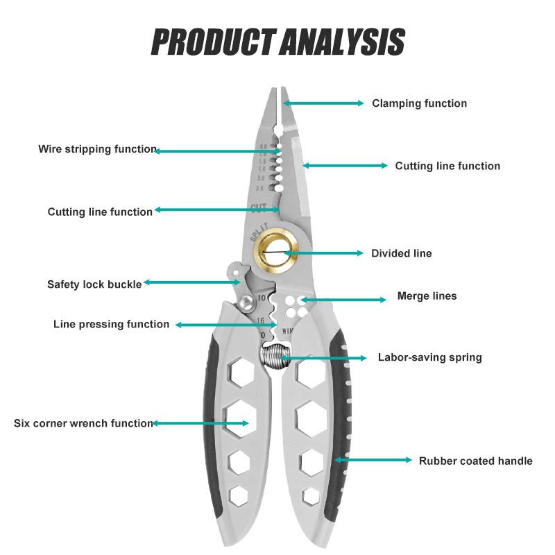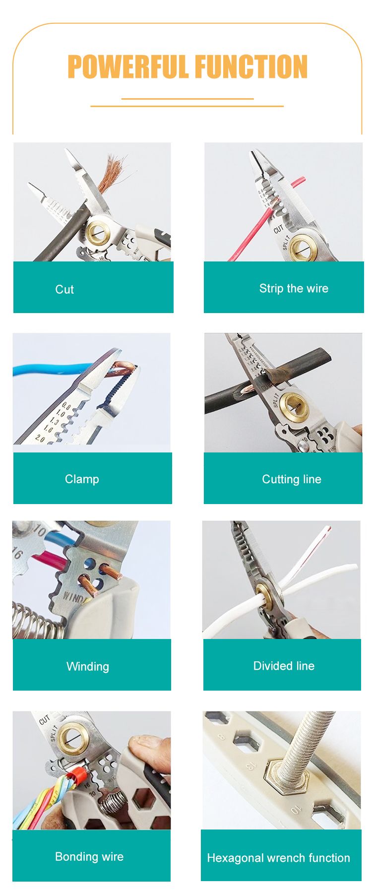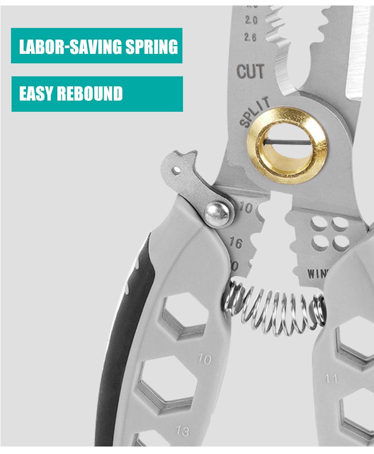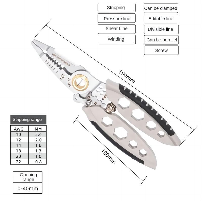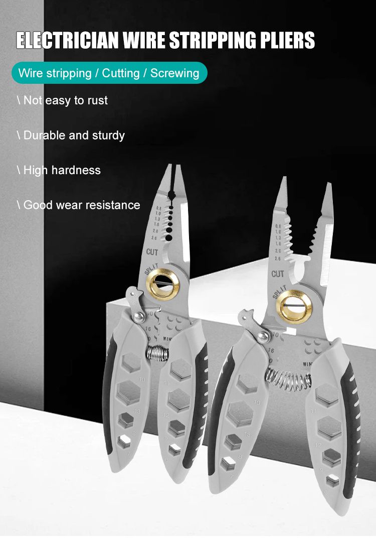9-in-1 Multifunctional Electrician's Pliers 7-inch Wire Stripper Cable Stripper Wire Connector External Hex Key Manual Tool